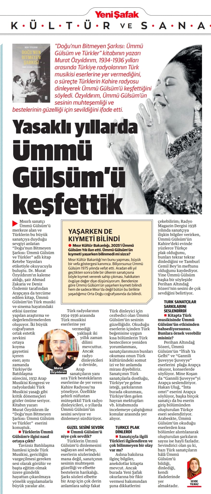Müzeyyen Senar, Safiye Ayla ve Kutlu Payaslı gibi isimlerin Ümmü Gülsüm’le kurduğu sanatsal bağlar arşivler, gazete kupürleri, dönem dergileri ve hatıralarla irdeleniyor. Aynı zamanda Türkiye’de Batılılaşma süreci, 1932 Arap Musikisi Kongresi ve radyolardaki Türk Musikisi yasağı gibi kritik dönemeçler, sanatçının Türk kültür ve sinema hayatındaki derin etkisini gözler önüne seriyor.